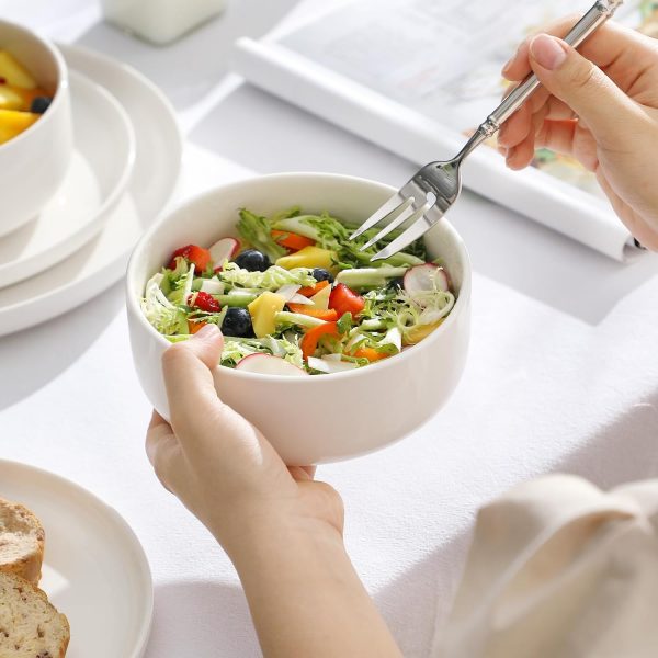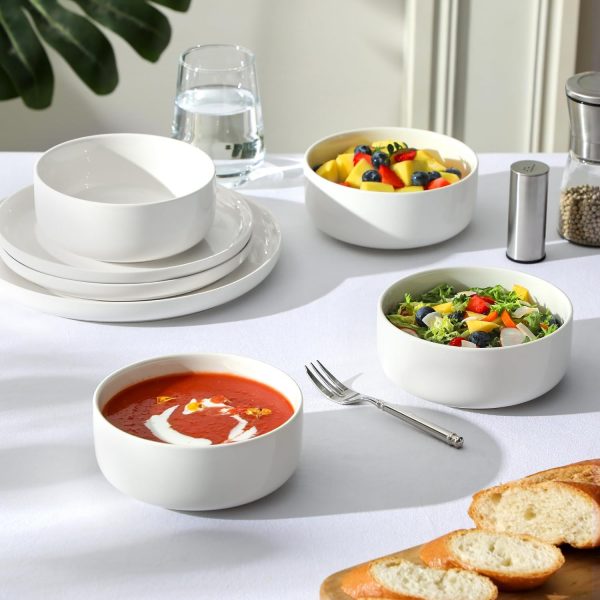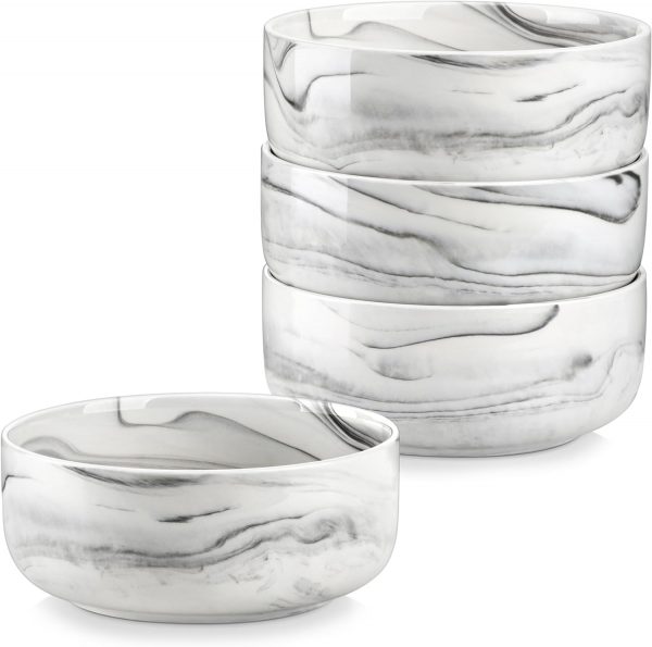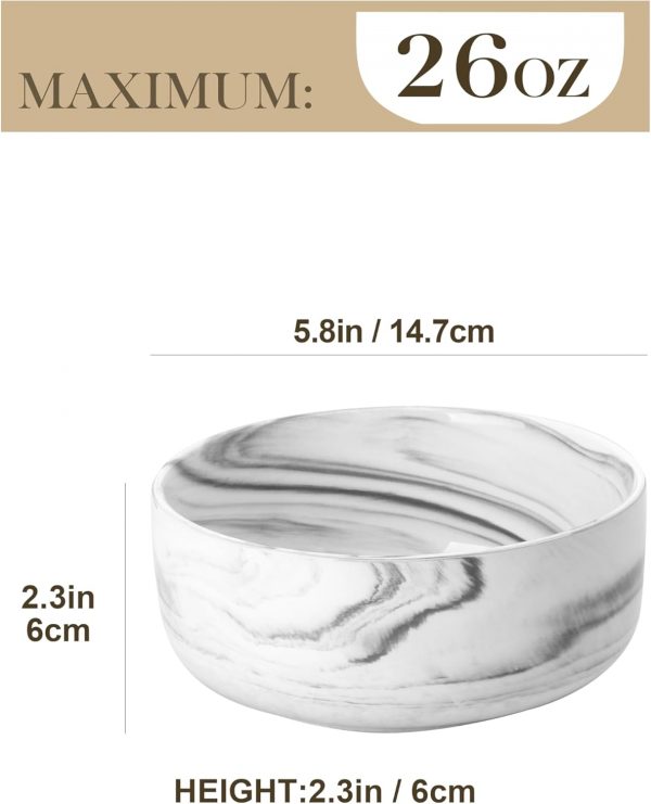 - 【Set of 4 Bowls】Indulge in our LUNA Series 5.8-inch cereal bowls set, boasting a 26 oz capacity. Crafted from eco-friendly ivory white porcelain in a timeless round shape, this bowl set adds sophistication to any table
